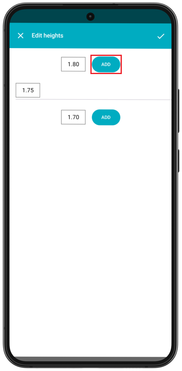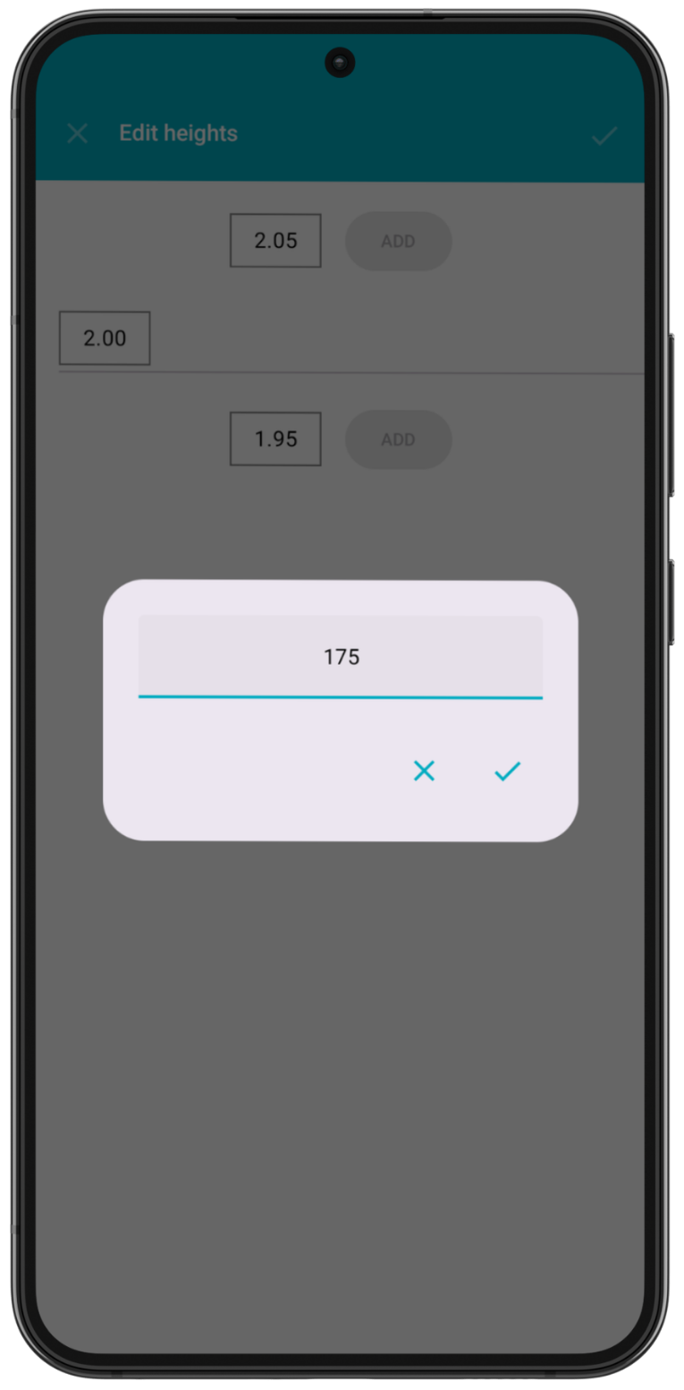 Once you have set all starting heights, press the check mark ✓ to save or ✕ to exit without saving.