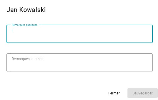 Vous pouvez également ajouter des Remarques internes visibles UNIQUEMENT dans l'administrateur Web et l'application de saisie Roster Athletics, accessibles uniquement aux utilisateurs autorisés.
