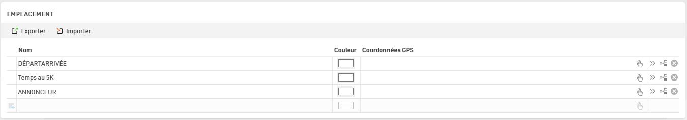 Ici, vous pourrez définir tous les points de mesure (emplacements) que vous souhaitez utiliser pour l’épreuve.