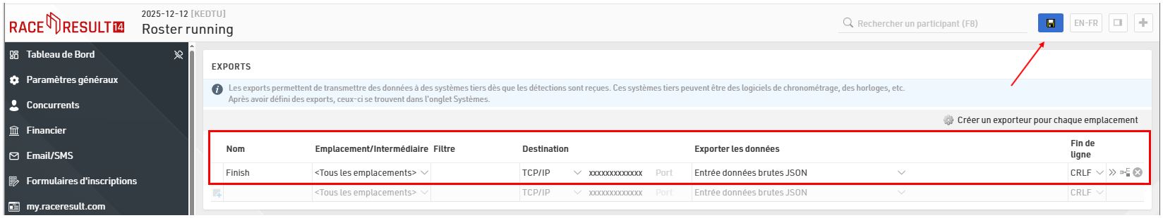 - Les exportateurs envoient les données avec le même nom que l’Emplacement défini dans RACE RESULT.