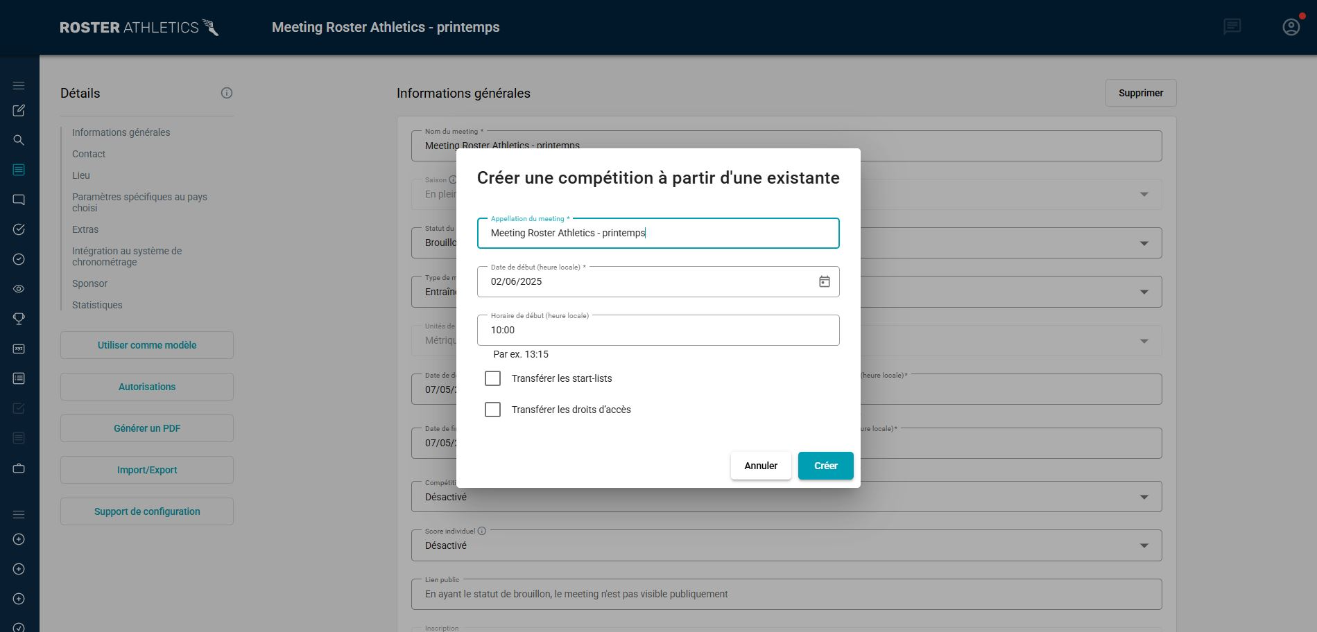 - Dupliquer une compétition : Nous avons introduit une option de modèle lors de la création d’une nouvelle compétition. Vous pouvez désormais dupliquer une compétition avec ou sans transférer les start-lists. Veuillez consulter le guide suivant pour en savoir plus : Dupliquer une compétition.