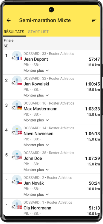 - Calendrier : Nous avons amélioré la gestion des horaires de départ des épreuves pour les adapter à votre fuseau horaire ou à celui du lieu, si votre fuseau horaire diffère de celui de la compétition.