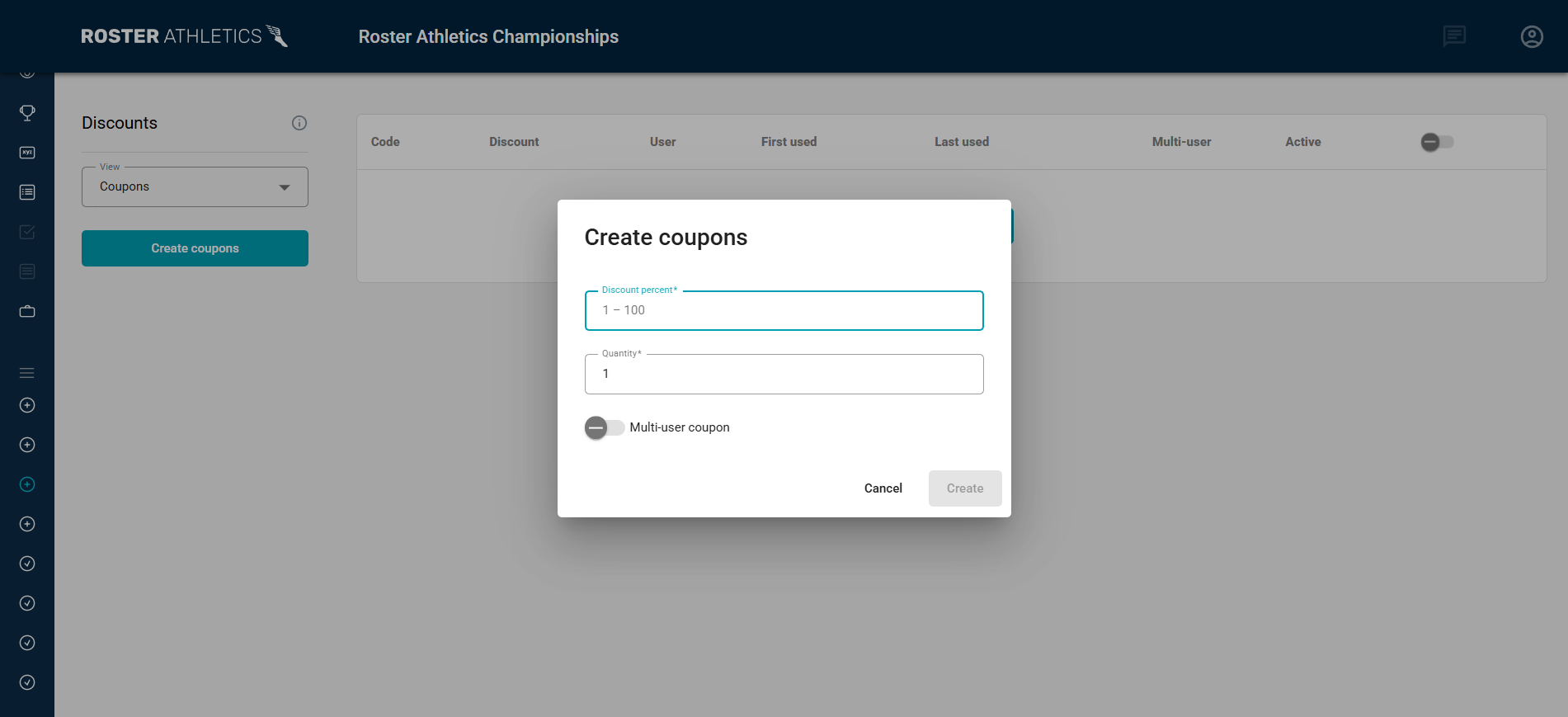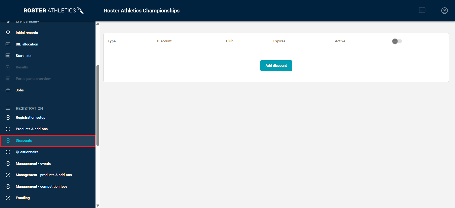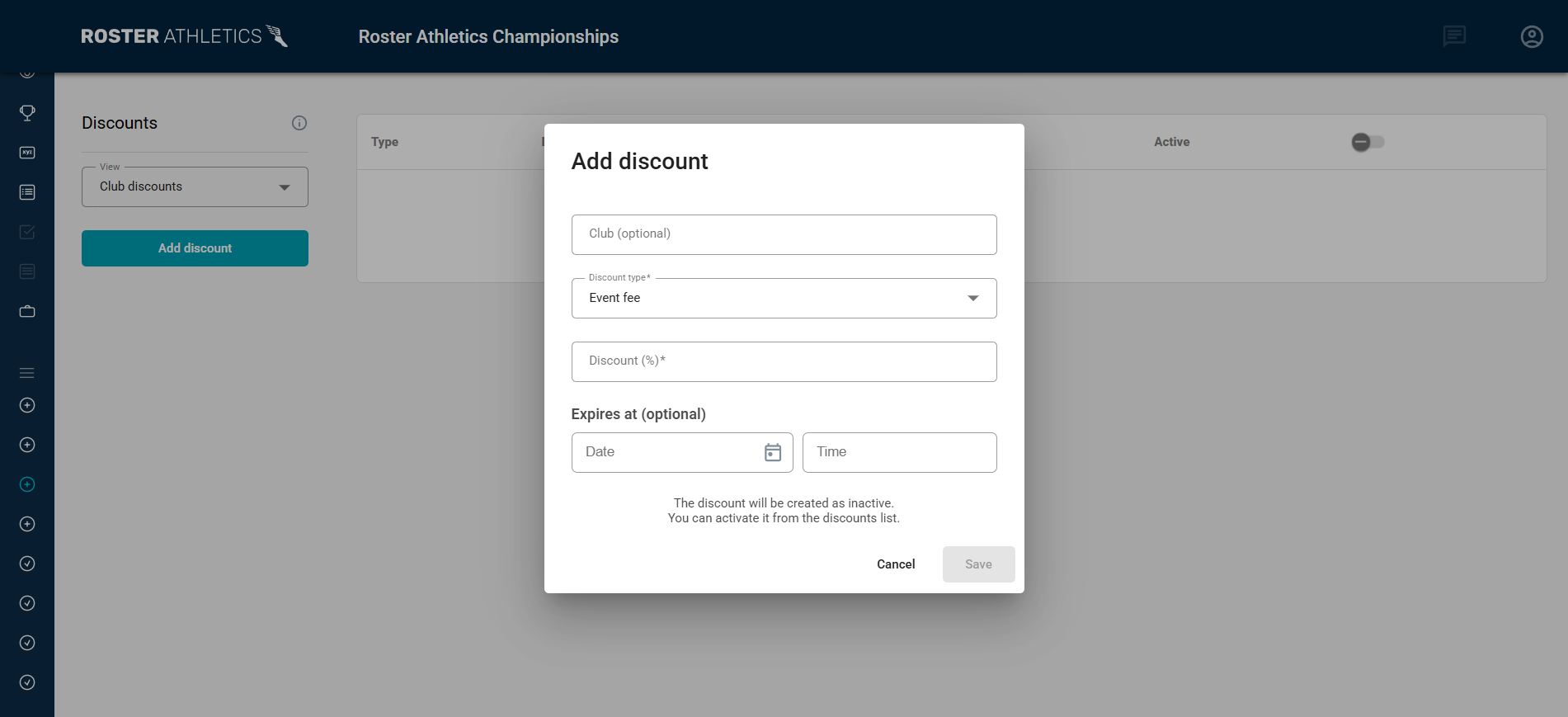 La plateforme Roster Athletics permet aux organisateurs/organisatrices d’offrir des frais d’inscription réduits grâce à des réductions club ou des codes promo.