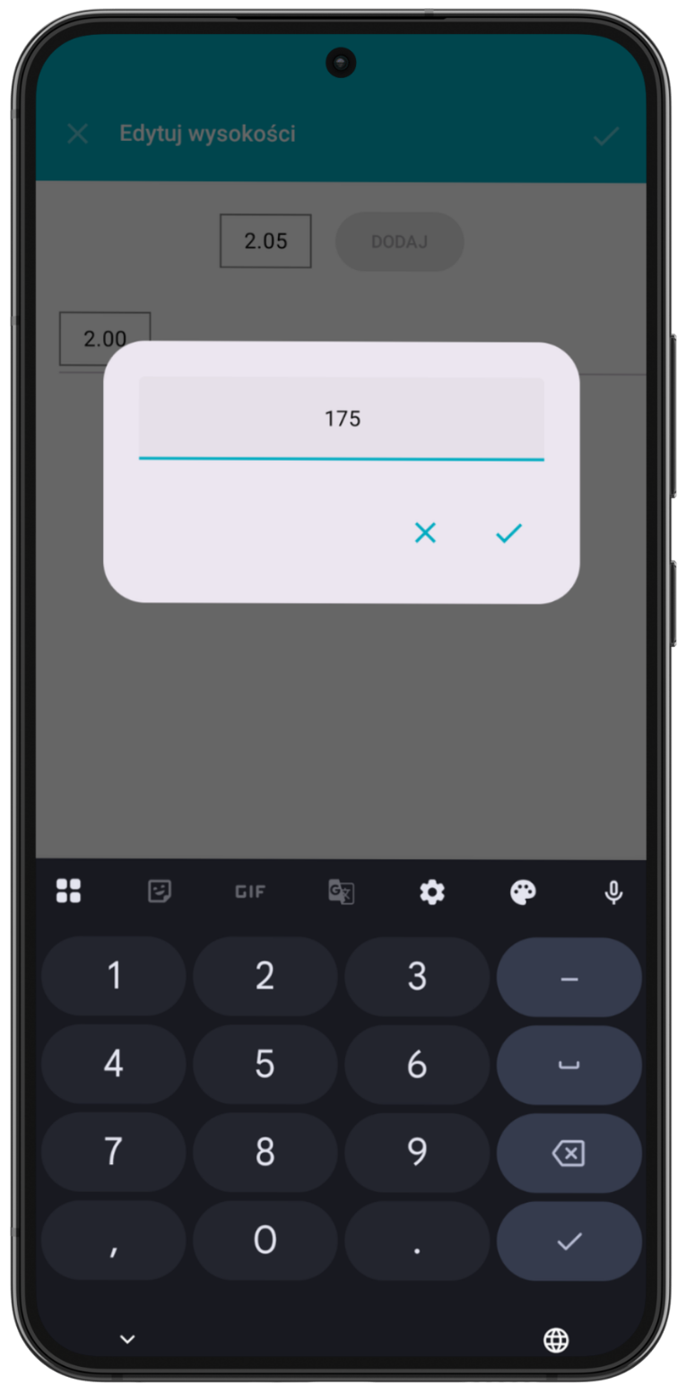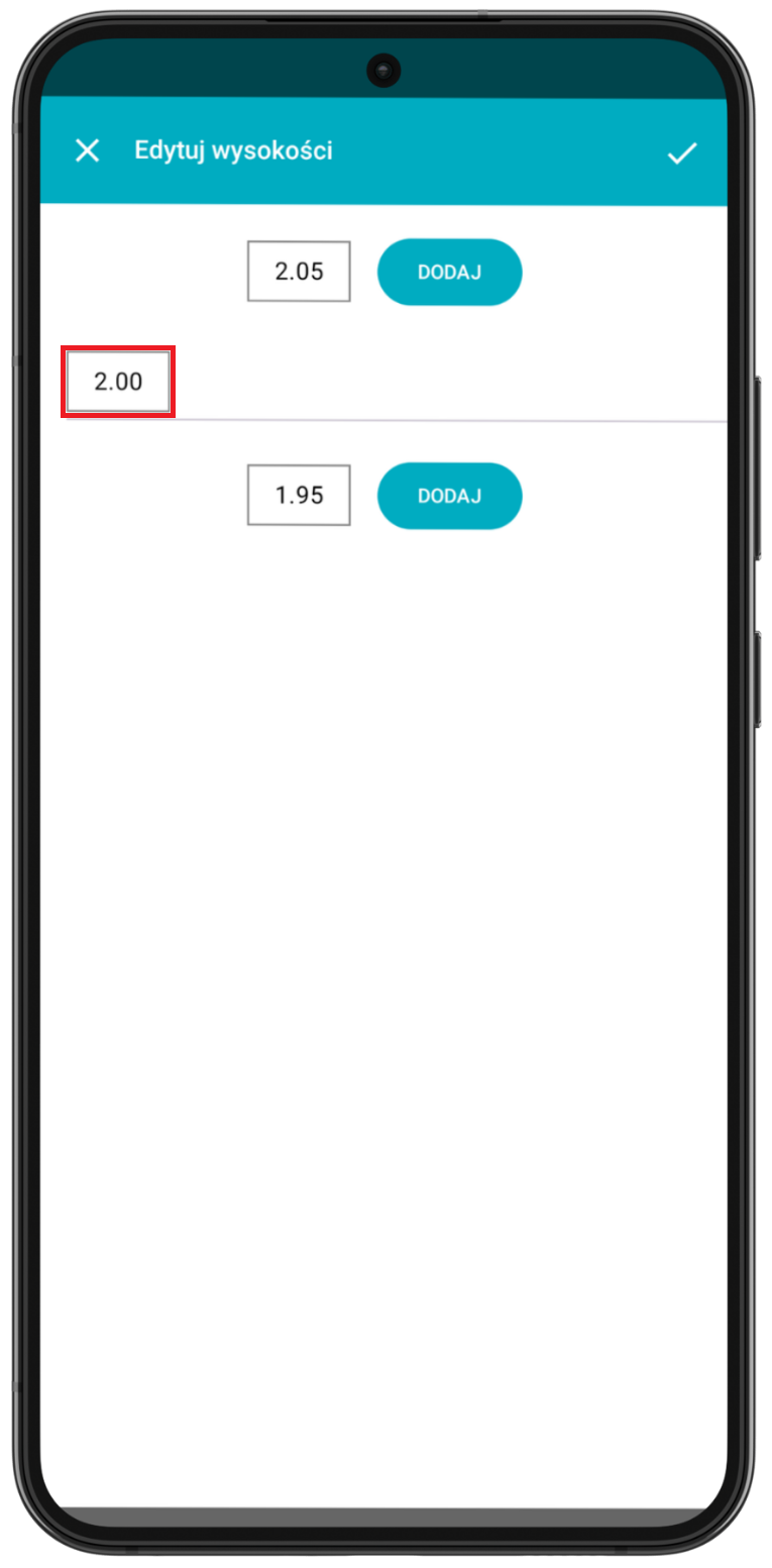 Po wprowadzeniu odpowiedniej wartości dla pierwszej wysokości kliknij ikonę ✓, aby zapisać zmiany, lub ✕, jeżeli chcesz zrezygnować z edycji.