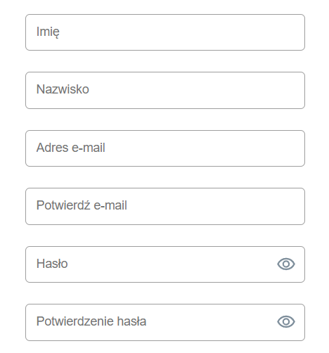 Jeżeli wybrałeś(-łaś) opcję rejestracji za pomocą e-mail, w kolejnych polach musisz podać imię, nazwisko, adres e-mail oraz stworzyć hasło i kliknąć przycisk Zaakceptuj i kontynuuj. Na podany adres e-mail zostanie wysłana wiadomość z kodem weryfikacyjnym. Adres e-mail można zweryfikować, klikając link umieszczony w wiadomości lub wprowadzając kod weryfikacyjny w ustawieniach profilu użytkownika.