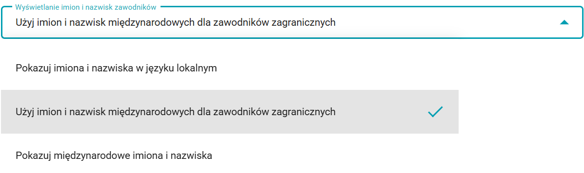 Jeśli zawodnik nie ma dodanej wersji międzynarodowej imienia i nazwiska, zawsze będzie wyświetlana wersja lokalna.