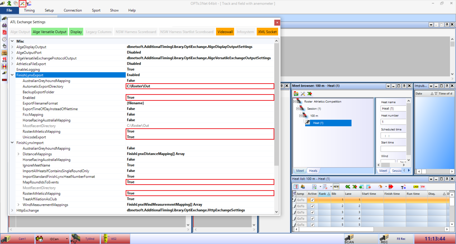 Oprogramowanie OPTIc3.NET wymaga jednorazowej zmiany kilku ustawień, aby zintegrować je z Roster Athletics. Otwórz OPTIc3.NET i kliknij ikonę narzędzi umieszczoną w górnym pasku programu. W nowym oknie ATL Exchange Settings zmień następujące parametry: